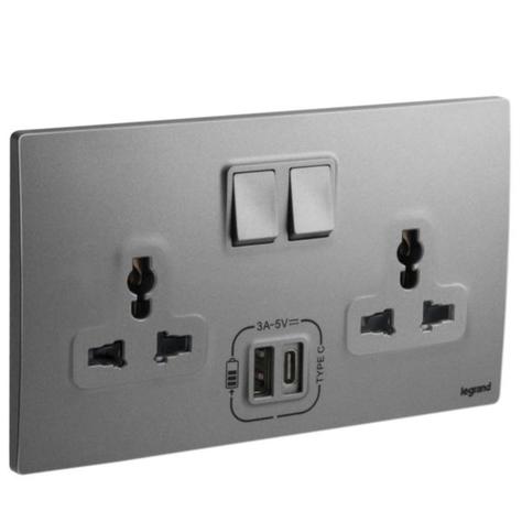 Ổ cắm đôi đa năng có công tắc và USB type A,C Mallia Senses 281123DS