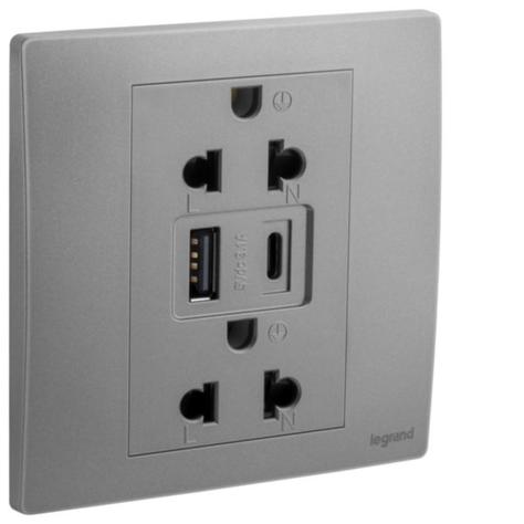 Ổ cắm đôi kèm USB sạc Type A+C 281204DS – 281204DS