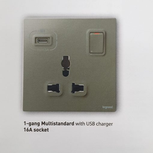 Ổ cắm đơn đa năng có công tắc + USB type C Mallia Senses 281125DS